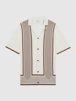Reiss White/Camel Heath Striped Cuban Collar Shirt