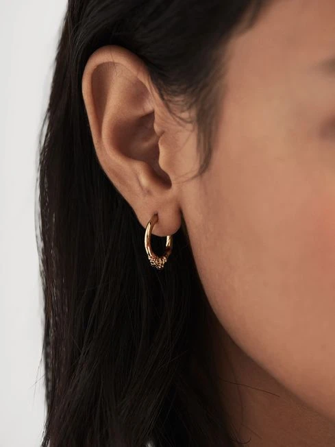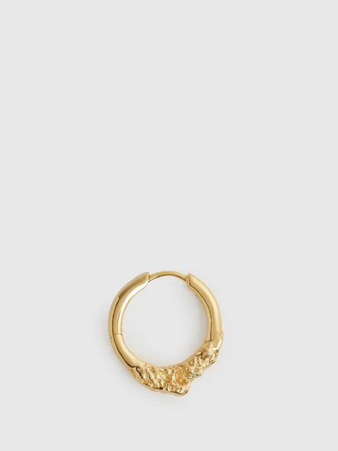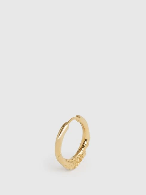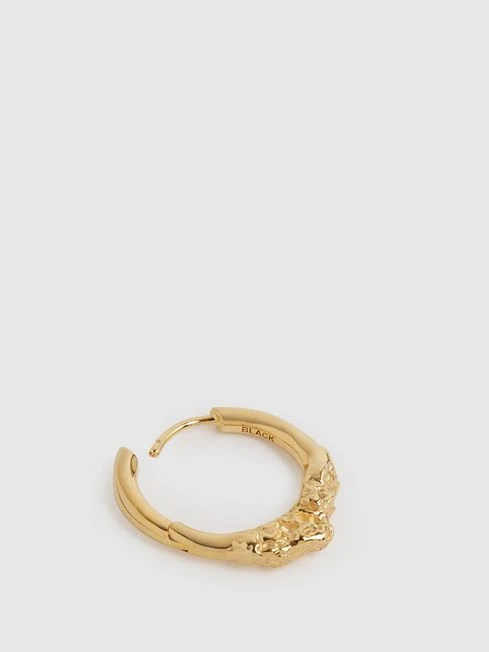 The Miro 8 Huggie is a unique take on the traditional huggie form. The bottom of the hoop morphs into a textured, molten effect, to add an edge to your everyday styling. This hoop is finished with a hinged back closure.