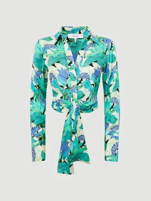 The Dana blouse is a bold addition to your rotation, ideal for building a colour-clash edit. It’s fitted with a buttoned closure and a tie-front detail for a customisable wear. Its cropped shape lends it to effortless pairing with high-rise shorts. Add heels to elevate the look.