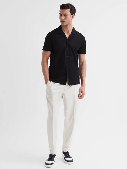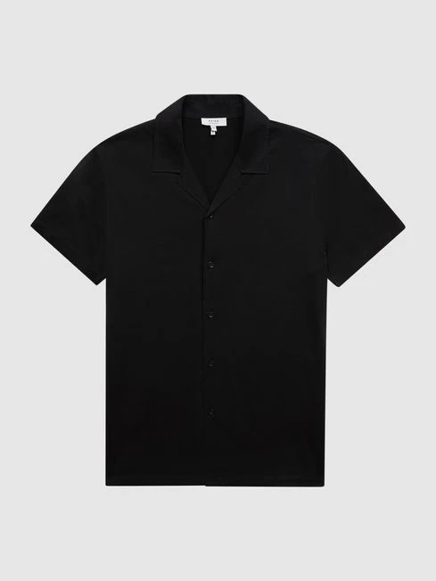 The Caspa shirt is engineered from a mercerised cotton jersey for a luxuriously soft finish. It features a cool Cuban collar and short sleeves for a sartorial summer aesthetic. A great smart-casual piece, style it with tailored trousers and loafers for a modern approach to office dressing.