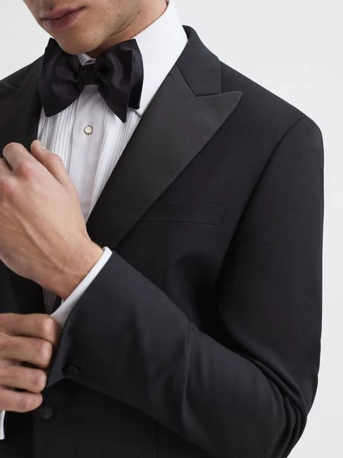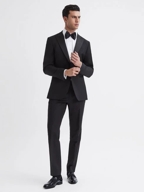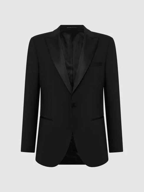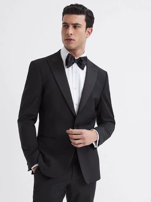 Leave a lasting impression at your next black-tie event with the Poker dinner jacket in black. Liquid repellent and crease-resistant to maintain form, this tailored piece features satin peak lapels, a single button fastening and jetted front pockets for a classic look. Wear it with the matching tuxedo trousers and a bow tie for sartorial perfection.