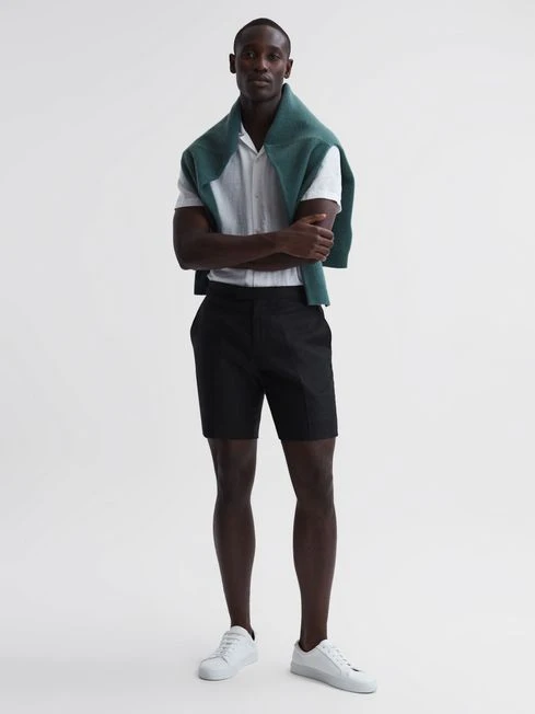 A preppy style agenda is reborn with the Searcy linen shorts. They’re engineered for summer wear, but their versatile black hue makes them a stylish option for all year round. Side adjusters tailor the fit and pockets lend a practical feel. Tuck in a linen shirt and pair with espadrilles to further this timeless aesthetic.
