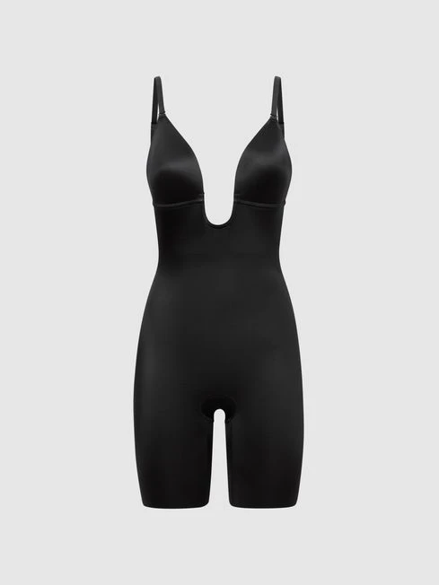 The Suit Your Fancy Plunge Low-Back Mid-Thigh Bodysuit is crafted from an ultra-thin, lightweight fabrication that shapes and smooths the frame. Its quick-dry composition makes it the perfect antidote to everyday chafing, and an Easy Access Gusset™ lends convenience. A plunge neckline and low-back design provide an invisible look under your edits. Adjustable, 5-way straps ensure versatility. Choose this bodysuit to build a flawless base beneath your edits.
