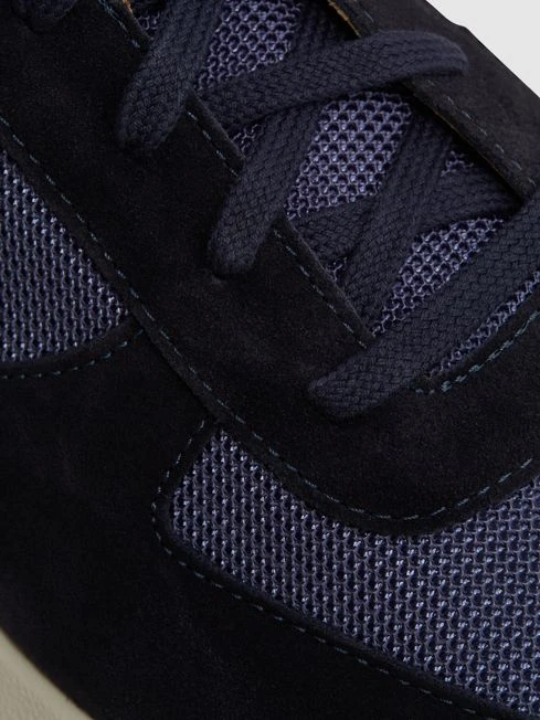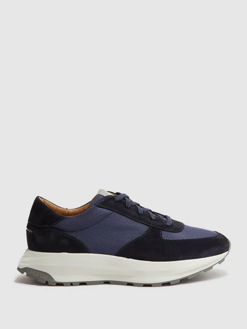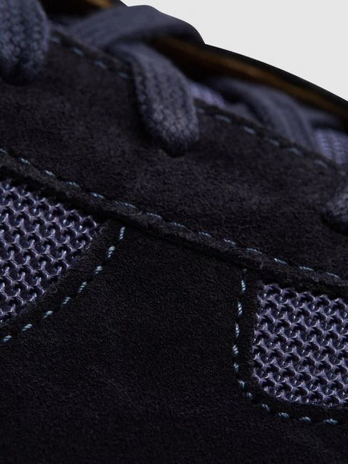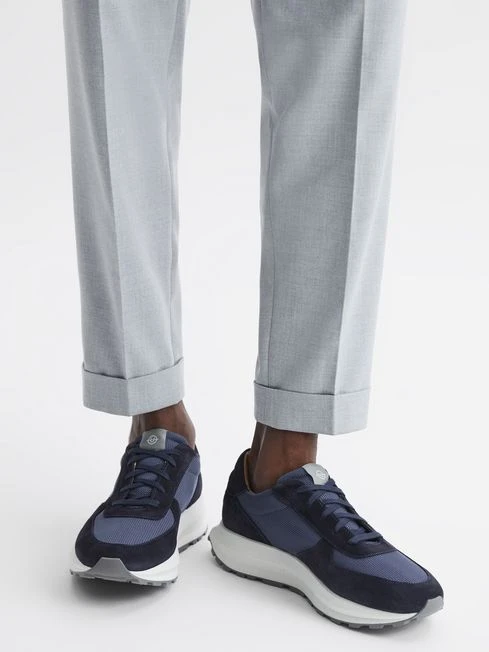 Unseen Footwear, curated by Reiss, is an artisanal collection of men’s footwear. Designed in London and handmade in Italy for enduring quality and style. The black and off-white Trinity Tech trainers feature suede paneling for a luxe look and feel. A recycled mesh fabrication is added to the side and front, a detail to enforce durability. These trainers are designed with the brand’s signature UNSFTW soles, built for ultimate comfort and traction. A reflective 3M strip, contrast patch, and embossed logos are added for an element of subtle style. Choose them to complete your off-duty Reiss edits.