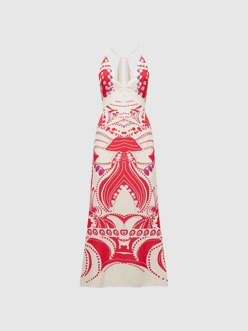 Extravagant designs cement their place in your occasionwear rotation. The Ebony maxi dress is an abstract-printed style, cut close to the frame to accentuate the waist. A deep V-neckline and cut-out detailing are added, lending this piece a seductive feel. Wear with neutral accessories to offset the bold mood of this dress.