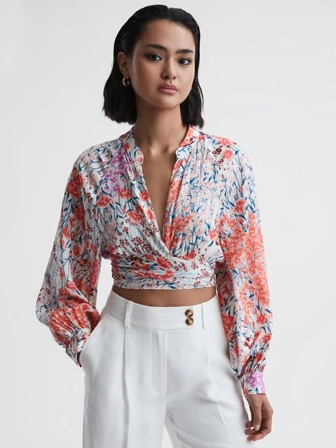 Add a feminine flair to your smart-casual rotation with the cropped Elle blouse. It’s crafted from a loose-fitting, floral printed fabrication and cut with a deep V-neckline. A tie element is featured to the front to cinch the look. Pair with neutral trousers for a fresh edit, or opt for the coordinating skirt.