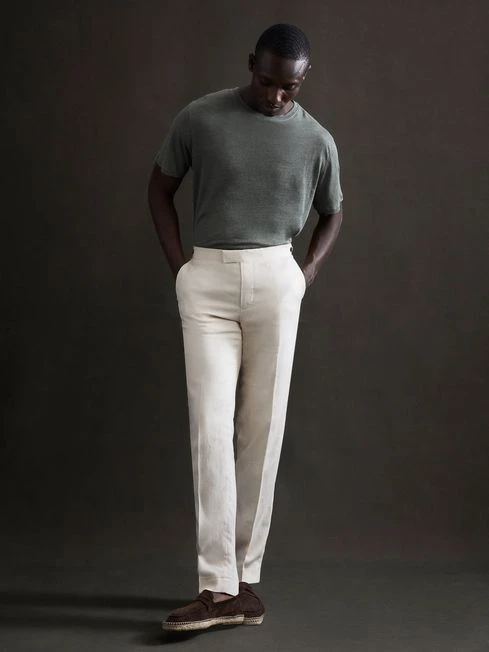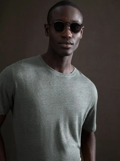 The Venice T-shirt is crafted from 100% linen for lightweight and comfortable wearing. It features a crew neckline and short sleeves. Wear with chinos and loafers for a sartorial summer look.