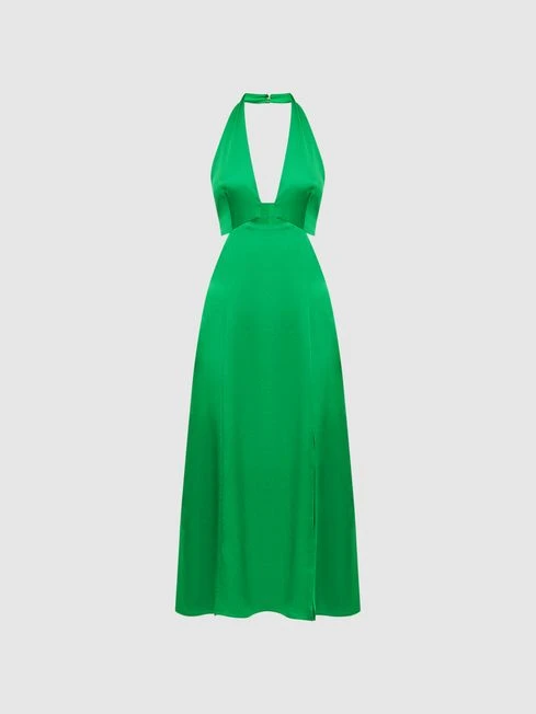 The rich jewel tone of the Maia midi dress makes it an alluring choice for evening occasions. It’s a slim-fitting style that accentuates the frame through cut-out detailing and a flattering halter neckline. A front slip enhances the mood. Style with neutral accessories to maximise the look.