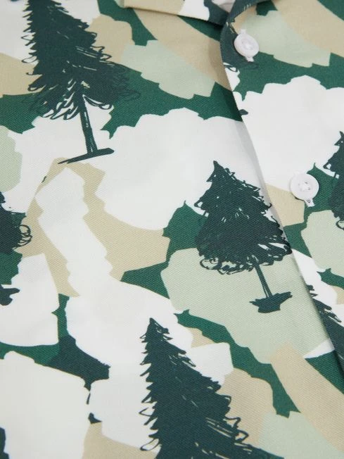 Reiss Green Saxon Junior Cuban Collar Short Sleeve Shirt