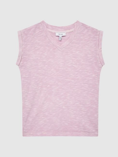 The Freddie T-shirt is crafted from a jersey fabrication in a unique, speckled shade. It’s cut with a V-neckline and features rolled sleeves for a more casual mood. Tuck into shorts and pair with trainers for off-duty appeal.