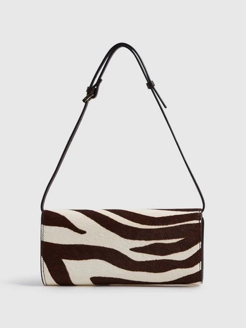 Add a striking element to your accessories collection with the Dakota, a baguette bag made from leather and calf hair. It’s crafted in a zebra motif. The shoulder strap can be removed, transforming it into an easy clutch. Style it with our classic neutrals to elevate the look.
