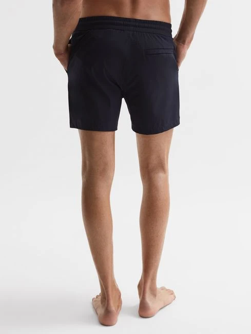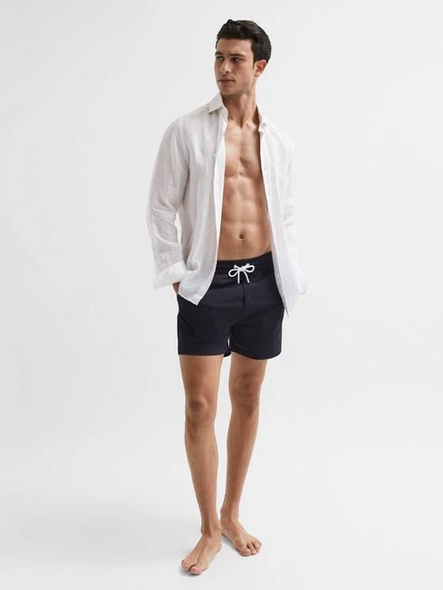 Resort styling calls for the Beach swim shorts. They’re cut to sit above the knee and feature a drawstring waistline for a customisable wear. An embroidered ‘Reiss’ motif is added to the reverse pocket, a refined element of brand detailing. Throw on an open-buttoned shirt for a laid-back getaway look.