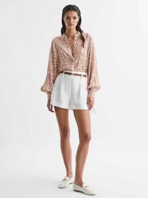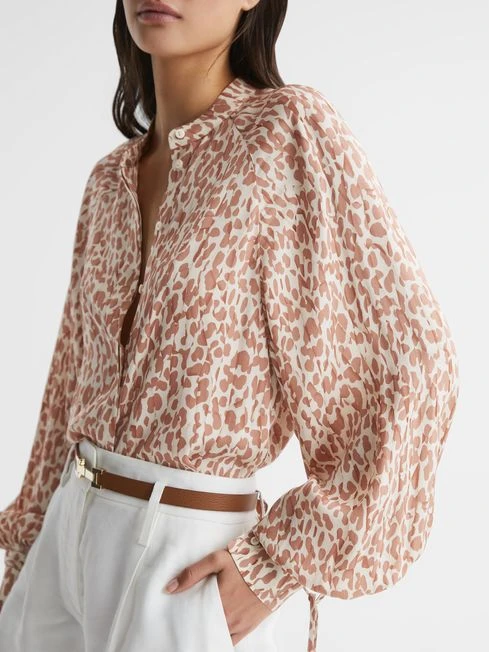 The Calla blouse is crafted from a lightweight fabrication and designed in an animal print. It’s fitted with loose-fitting raglan sleeves and a round neckline. Tie elements to the cuff lend a feminine feel. Button as required to suit your mood, then tuck into shorts.