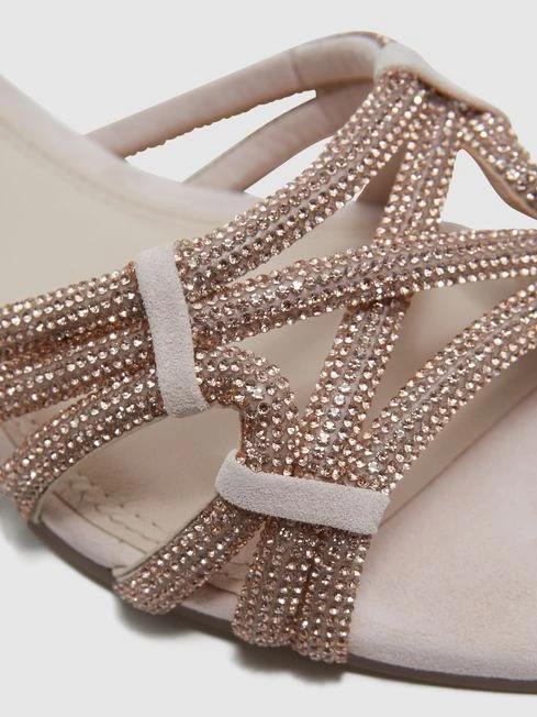 Embellish your edits with the slip-on Eryn sandals in nude. They feature a diamante rope detail to the front which secures the foot for a comfortable wear. Suede accents refine the look. Add them to special occasion styles or elevate the everyday with a touch of glamour.