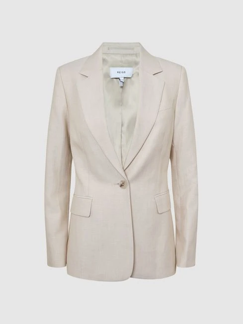 Refine your wardrobe with the Shae single-breasted blazer. It’s crafted from a lightweight cotton-linen blend in an understated oatmeal hue, for season-long wear. Darts tailor the profile for a sleek look. Style with the coordinating trousers and your favourite heels.