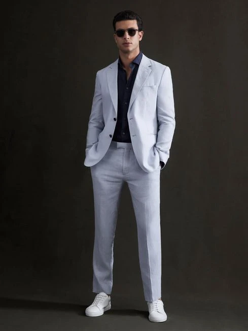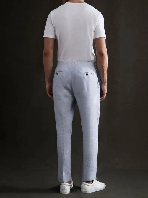 Reiss Soft Blue Kin Slim Fit Linen Trousers