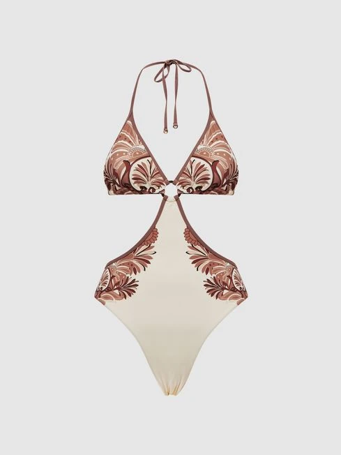 Poolside moments get a seductive twist thanks to the Natalie swimsuit. It’s an open-back design with cut-outs to the side which facilitate a slimming effect. The halter-neckline ties at the reverse for a customisable fit. Choose a sarong to complete this intriguing edit, and pair with your favourite sandals.