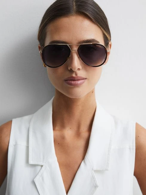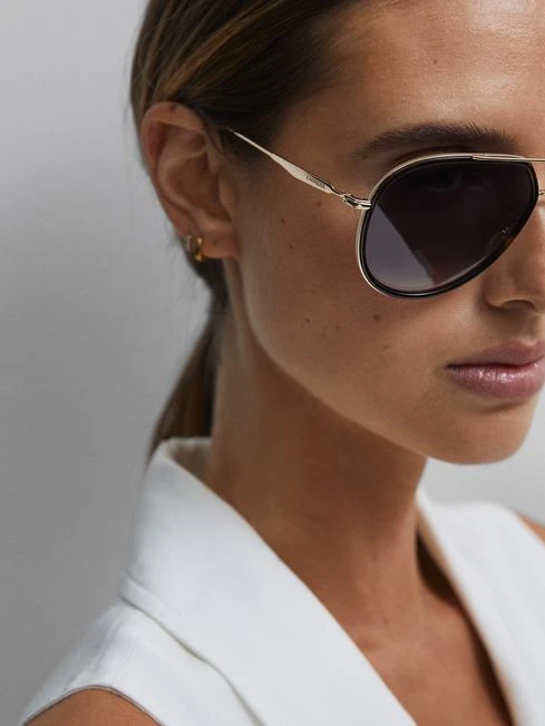 Carrera eyewear, curated by Reiss, is a collection of unisex sunglasses with designs driven by the sporting heritage of the Carrera Panamericana race. Discover the futuristic, branded frames that have long become synonymous with a fast-paced lifestyle. The 295/S sunglasses are a bold style. They’re designed with angular metal frames and fitted with a double nose bridge. Contrasting rims refine the look for a signature finish. Choose them to curate a cool edit.