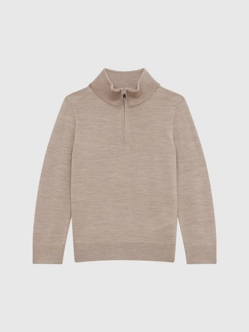 Reiss Wheat Melange Blackhall Senior Zip Up Knitted Jumper