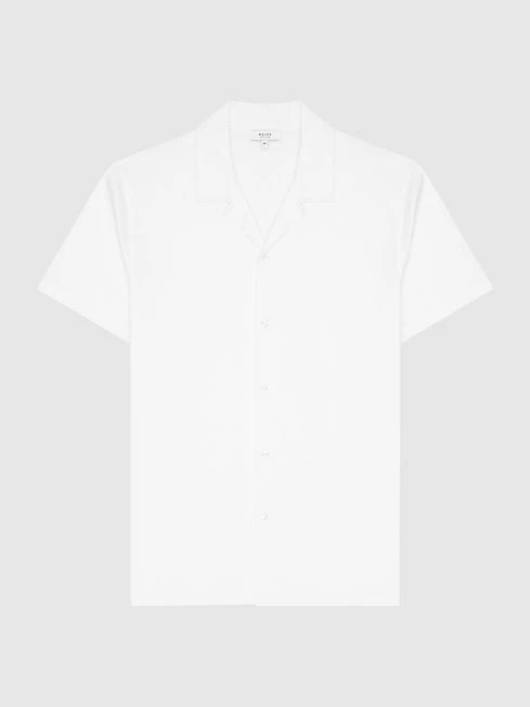 The Caspa shirt is engineered from a mercerised cotton jersey for a luxuriously soft finish. It features a cool Cuban collar and short sleeves for a sartorial summer aesthetic. A great smart-casual piece, style it with tailored trousers and loafers for a modern approach to office dressing.