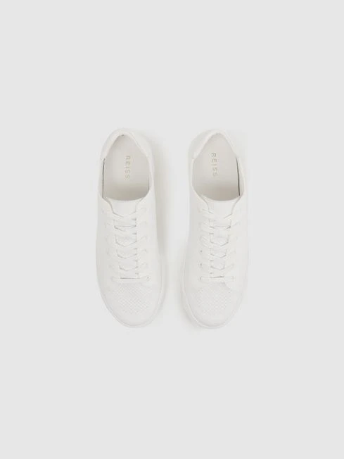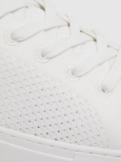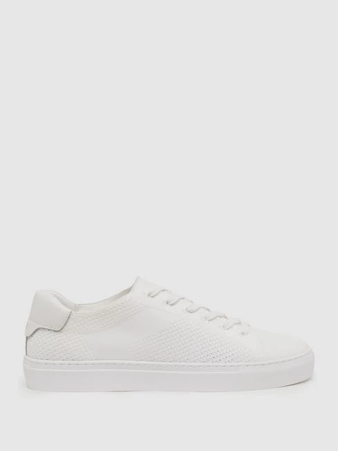 The white Finley trainers are a unique knitted construction finished with leather detailing, offering a luxe take on a sportswear-inspired shoe. Wear with a T-shirt and tailored trousers for a trend-led, smart-casual look.