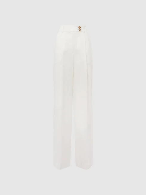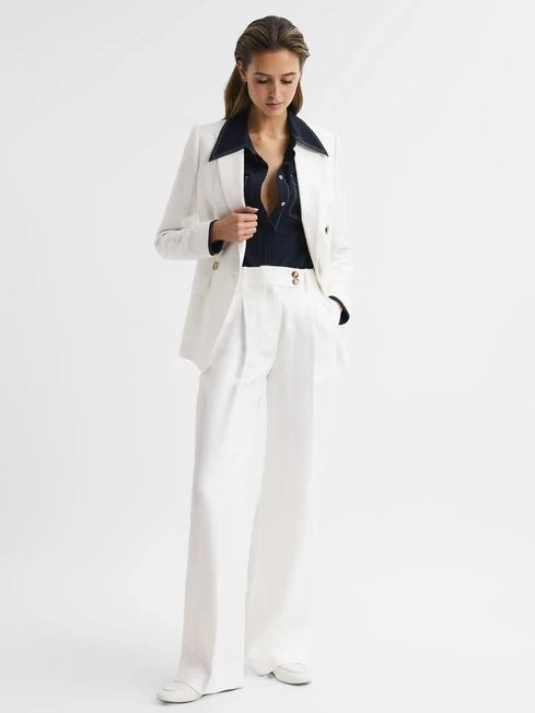 Sleek city styling calls for the Hollie trousers. Their linen-blend fabrication makes them a breathable option for smart-casual moments. Mottled buttons detail the front, and pressed creases maintain a formal note. Style with the coordinating blazer and choose flats or heels to suit the mood.
